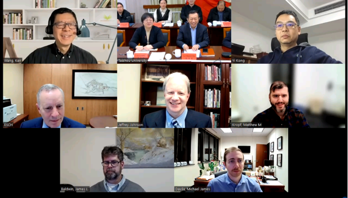 12月15日上午,我校与美国匹兹堡大学班德福校区云端连线,召开视频会议,洽谈合作办学。学校党委副书记、校长乐传永,党委委员、副校长李钧敏,匹兹堡大学班德福校区校长Richard Esch,副校长Jeffrey Johnson、James Baldwin与Michael Davila,以及两校有关部门负责人等参加了会谈。视频会议由李钧敏主持。乐传永与Richard Esch分别代表中美两校对学校所在城市与办学概况,特别是国际化发展情况进行了介绍,并诚挚邀请对方进行...