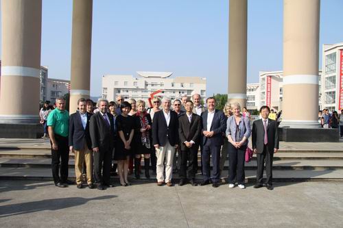 10月15日下午,德国哈瑙市市长克劳斯·卡明斯基和议长约根·绍尔曼率领友好代表团在台州市外事办领导的陪同下来我校访问,我校校长龚建立会见代表团,并陪同代表团考察了临海校区。