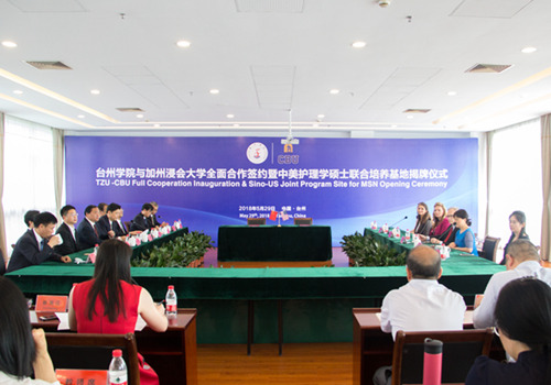 5月29日上午,台州学院与加州浸会大学全面合作签约暨中美护理学硕士联合培养基地揭牌仪式在椒江校区举行。