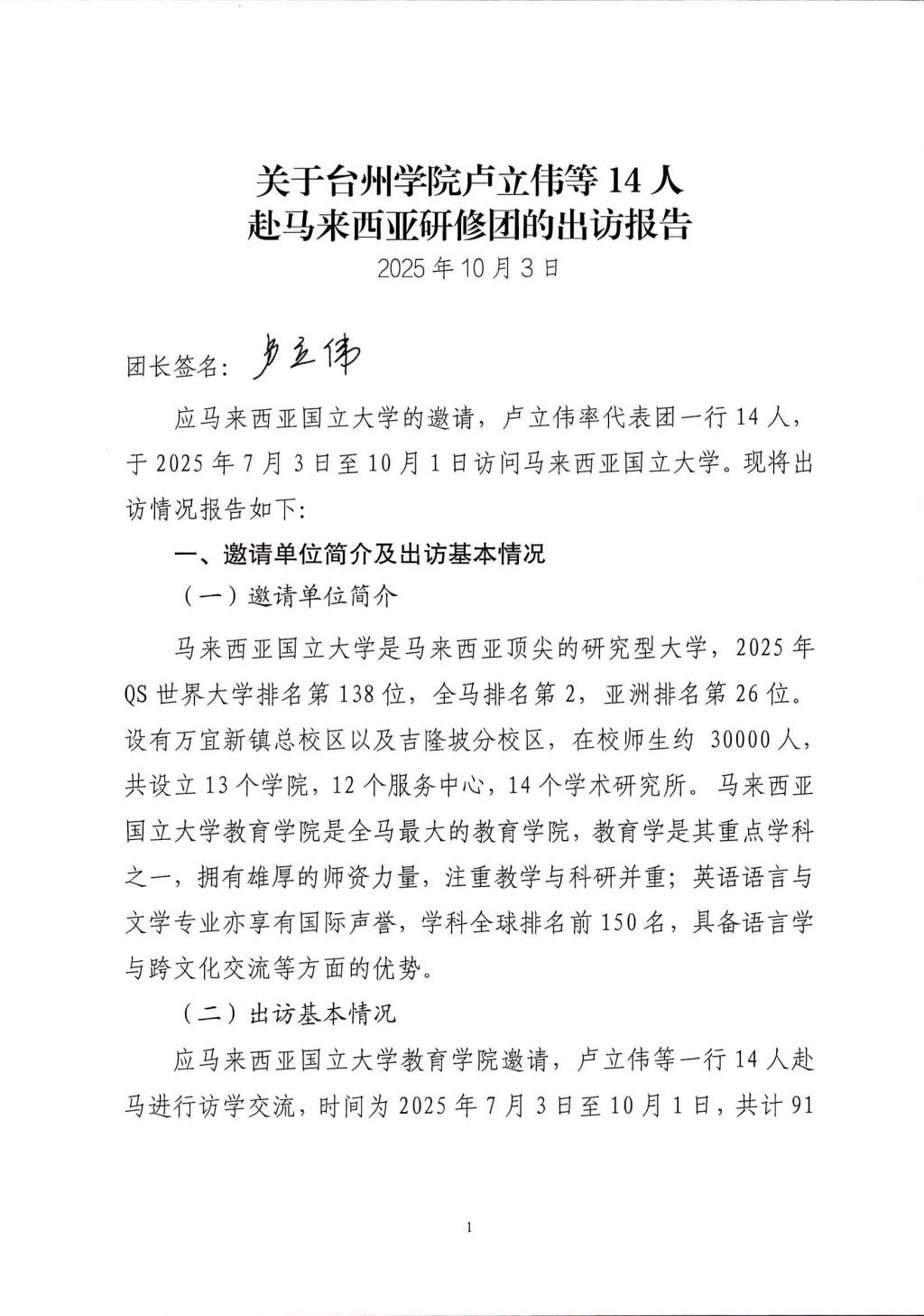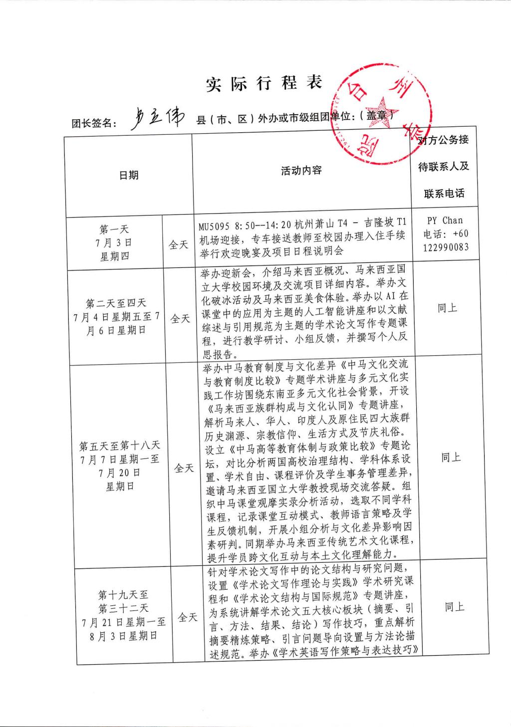 卢立伟等14人赴马来西亚研修团因公回国(境)公示