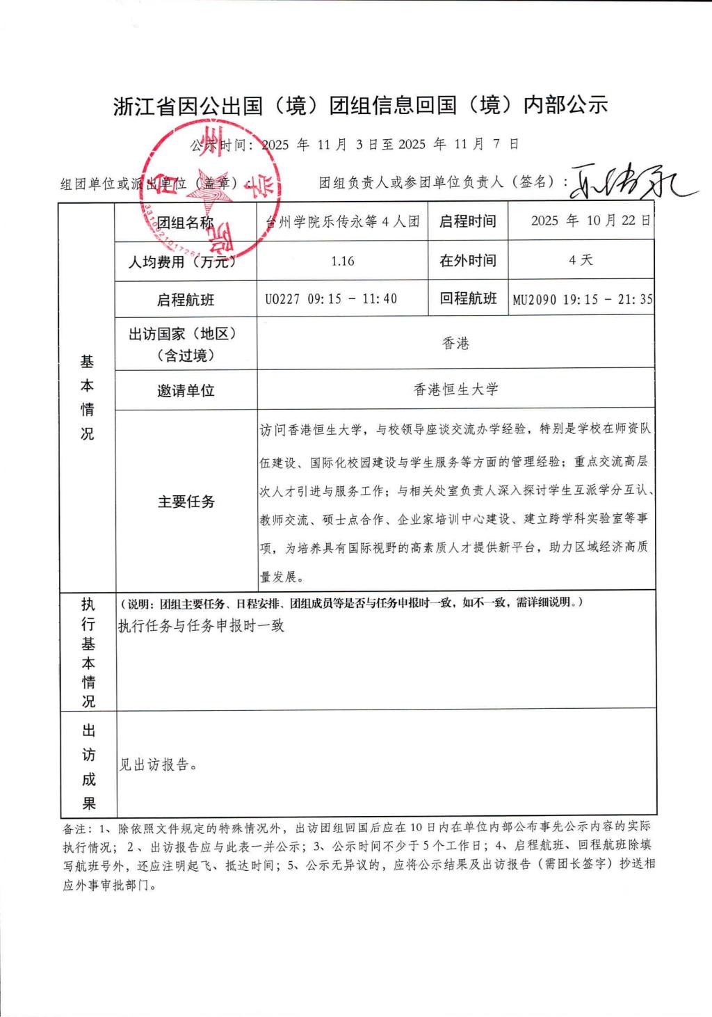 乐传永等5人赴香港教育访问团因公回国(境)公示