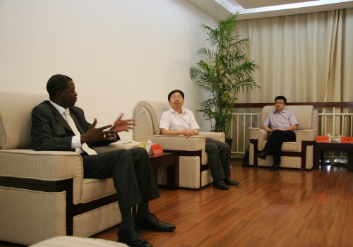 冯尚申副校长代表学校对MOUDOUNGA部长到来表示热烈欢迎,介绍了学校的整体概况和办学历史,着重就学校国际交流工作及取得的成果作了具体介绍,愉快回顾了2007年8月学校与非洲二十多个国家的教育部高级官员和大学校长友好交流的情况,并表示学校将创造良好条件支持与加蓬共和国各高校的合作交流。