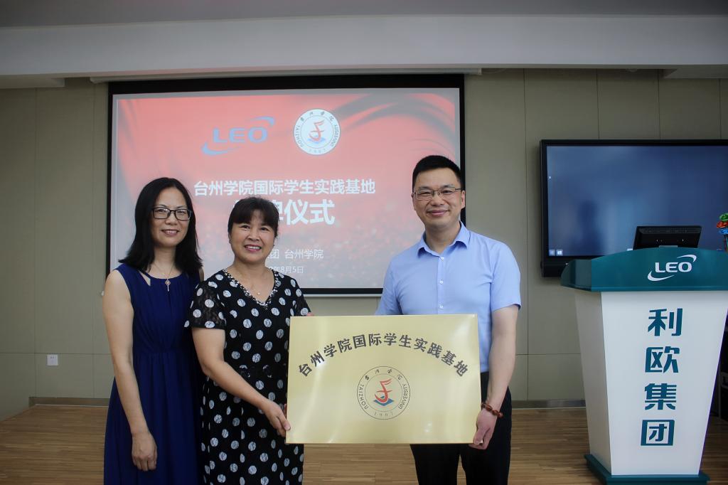 8月5日,我校首个“台州学院国际学生实践基地”在上市公司温岭利欧集团成功挂牌。利欧集团人力资源总监周晓礼,台州学院国际学院院长王秀萍,副院长王爱琴出席揭牌仪式。
