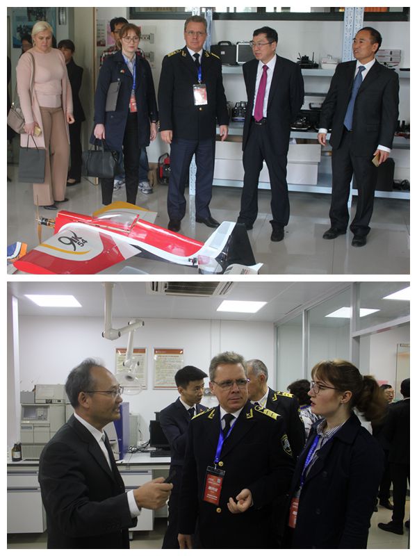 会后,乌克兰国立航空大学校长Isaienko Volodymyr一行在崔凤军书记与赵小明副校长的陪同下,饶有兴致地参观了校园,重点考察了我校医化产业研究院、航空工程学院实验室与医学院学生文明寝室等。