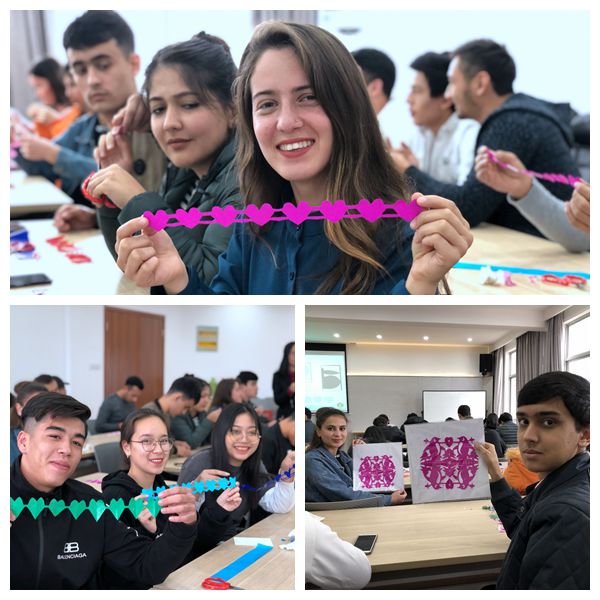 看完张老师的展示之后,同学们对剪纸产生了浓厚兴趣,跃跃欲试。从基本的图案到复杂的窗花,国际学生在张老师的指导下,完成了一幅幅属于自己的作品,更有学生发挥创意,将具有本国特色的图案通过剪纸展现出来,赢得了老师和同学们的赞许。活动现场气氛热烈,欢声笑语不断。