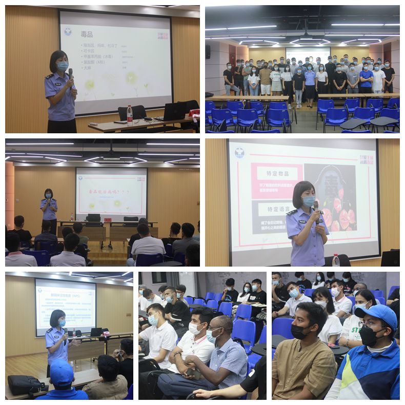 台州市禁毒办夏莹警官以“珍爱生命,远离毒品”为主题开展毒品安全教育,向外籍师生介绍毒品由来、种类及其危害等。通过还原多起真实案例,讲述普通人因好奇心沾染毒品或结交不良朋友误入歧途的惨痛经历,为外籍师生敲响远离毒品的警钟。随后,在校禁毒宣讲团成员的带领下,外籍师生参观了我校禁毒专题教育展馆,全面了解涉毒的严重后果。通过此次毒品安全教育活动,进一步提高了广大外籍师生识毒、防毒、拒毒的自我防范意识和自我保护能力,为构建和谐校园、创建和谐社区做出不懈努力,收获满满。