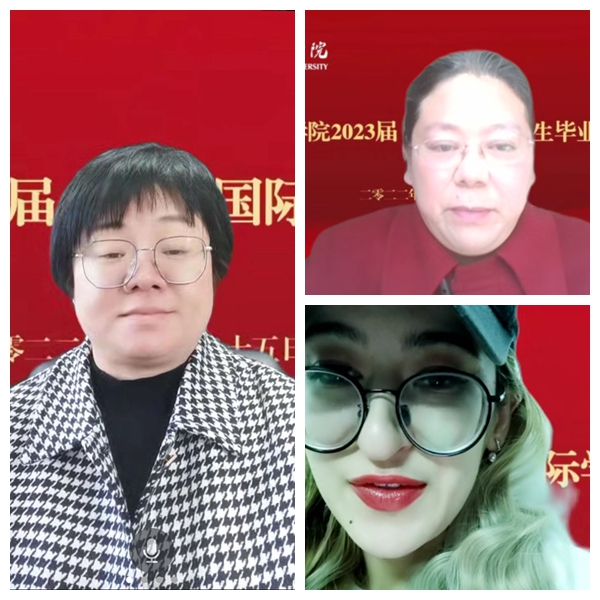 商学院领导,教务处、人事处、学工部、团委、保卫处、计财处、国资处、后勤处等相关职能部门负责人,国际学院领导、毕业班辅导员、班主任及负责教学工作的教师们,2023届(春)全体国际学生,齐聚云端,参加了此次毕业典礼。