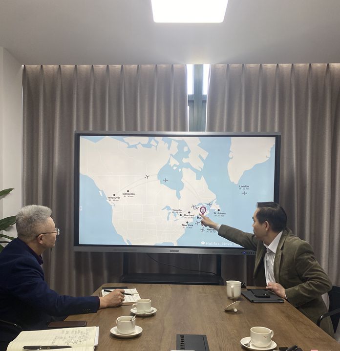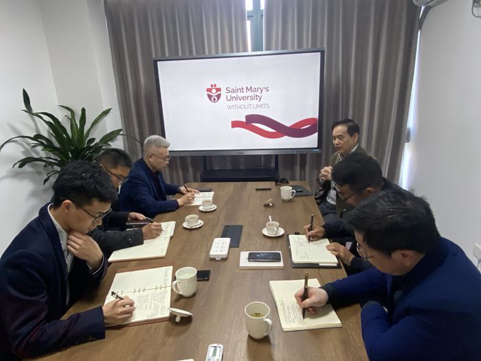 施安全简要介绍台州学院发展历程以及开展国际交流与合作的情况,并就两校建立合作提出一些构想。段文奇等也针对各自学院发展需求提出在本硕一体培养、师资培训、科研合作等方面的合作意向。与会双方就此展开探讨,最终形成一致意见,即通过两校签订框架合作协议、派遣学生参加圣玛丽大学Summer Institute短期交流、学生和师资的联合培养三步走,未来在此基础上带动合作办学和科研合作等,把两校的合作与交流做深做强。