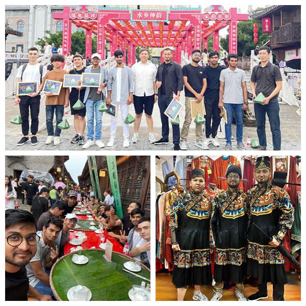 端午节是我国集拜神祭祖、祈福辟邪、欢庆娱乐和饮食为一体的民俗大节。此次体验活动进一步弘扬了中华民族传统文化,让我校各国留学生切身感受到了地道的“中国味”,领略了东方传统文化的魅力,成为我校留学生“感知中国”实践活动---洋“霞客”东游记里富有特色的篇章,让留学生们回味无穷。