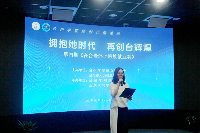 在开场致辞中,王爱琴介绍了“她时代”微论坛活动,并对沃尔沃汽车台州工厂高管团队的到来表示热烈欢迎。她表示,这是一次难得的学习交流机会,针对学生们非常关切的话题,特邀嘉宾将会分享个人学习经历和在中国的工作情况、职业发展和生活经验,希望对中外学生求职应聘就业有所启迪。