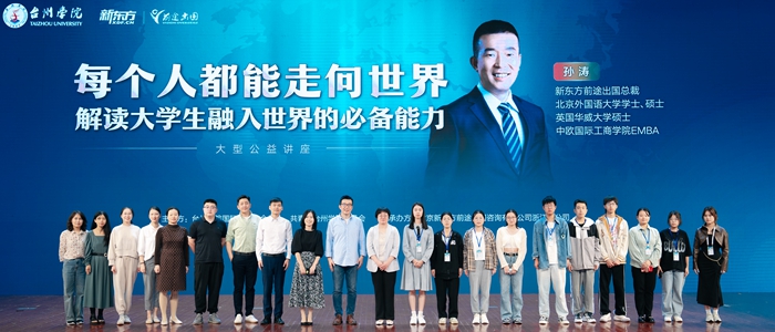 当天下午,孙涛在椒江校区大会堂给近千名师生带来了一场精彩的出国留学专题讲座——《每个人都能走向世界——解读大学生融入世界的必备能力》,校党委委员、副校长李钧敏出席并主持讲座。