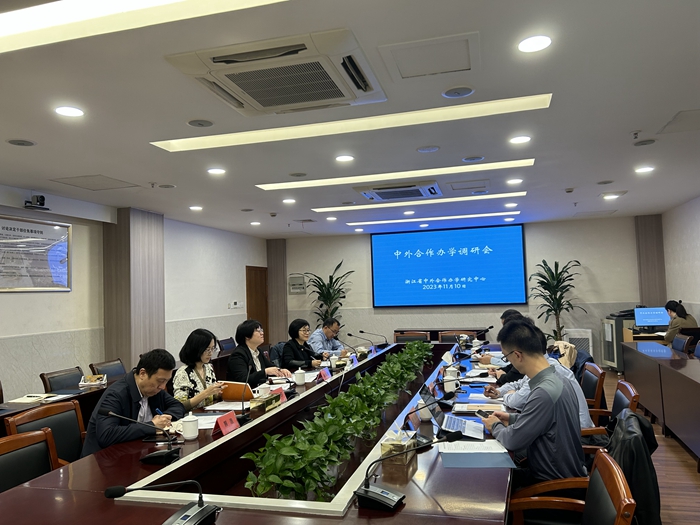 11月10日上午,为贯彻落实《教育部浙江省人民政府关于共同推进浙江教育高质量发展助力共同富裕示范区建设备忘》,扎实推进中外合作办学高质量发展改革创新试验区建设,浙江省中外合作办学研究中心受浙江省教育厅委托,在我校椒江校区行政楼第一会议室召开台州高校中外合作办学调研会。
