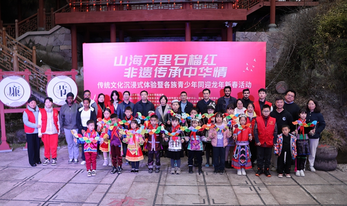 缩山拳是临海市传统体育、游艺与杂技,浙江省省级非物质文化遗产之一。国际学生们跟着缩山拳传习所师傅、台州学院樊坤老师学习一招一式,学得有板有眼,并参与制作花灯、猜灯谜、写福字、舞板龙、刻画等系列活动,在一撇一捺间体验中国书法的文化底蕴,在一折一剪中感受中国民间传统艺术的魅力,在“江南八达岭”临海古长城上舞起板龙,感受恢宏气势,共祝新年好愿景。