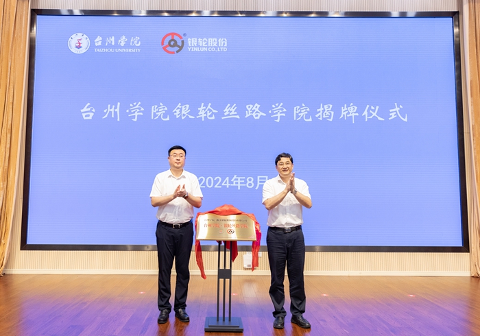 台州市政府副市长程炜博与我校党委书记朱坚共同为台州学院银轮丝路学院揭牌