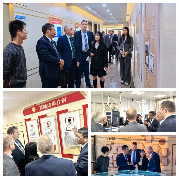 会后,俄罗斯阿穆尔共青城国立大学代表团参访医药化工学院,听取了解质谱分析仪实验室的研究情况、我校创新团队成员关于科技成果转换与产学研合作的详细介绍,深入了解产学研合作项目、国家级获奖项目、我校发明专利转让情况、1139科技服务小分队工作以及全国性竞赛的获奖情况。针对先进膜材料、涂层材料和合金材料等研究方向,代表团表示需回校后进行进一步讨论,并将反馈相关意见。此外,双方重点关注中俄两国基金申请的差异,就申报项目问题进行了探讨。在医药化工学院参访期间,双方达成共识,一致认为签订目标明确的项目合作协议是未来合作的关键,强调项目能够解决实际问题。此外,双方就开展共同撰写论文和人才交流等进行深入洽谈,期待未来在科技创新、学术研究等领域实现更紧密的合作。