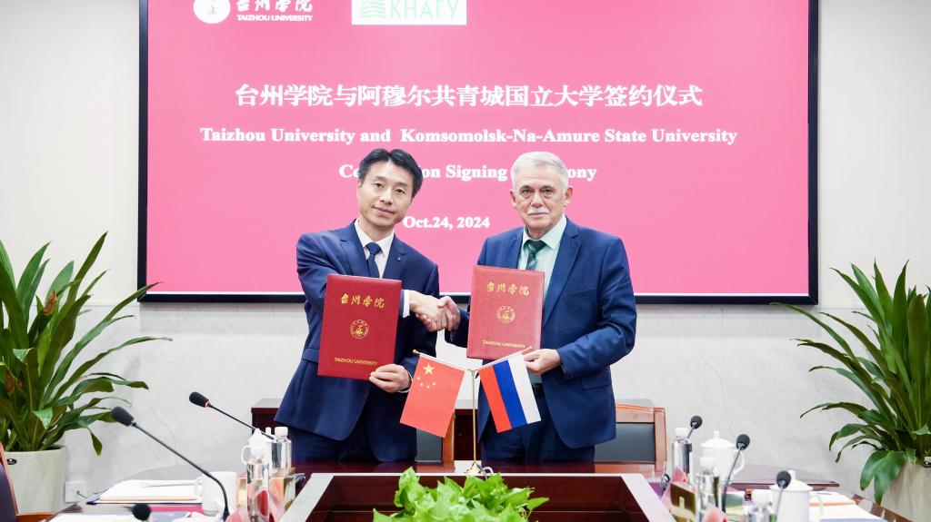 会上,李建军和亚历山大•科斯梅宁分别代表台州学院与阿穆尔共青城国立大学共同签署了《台州学院与阿穆尔共青城国立大学合作谅解备忘录》。双方代表就共同开展科研发表论文、申报国家基金资助项目、建设国际联合实验室、开展学生交流等方面开展了热烈讨论,并达成共识。