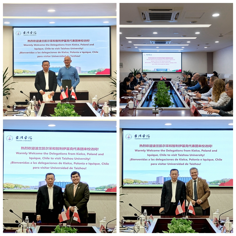 波兰凯尔采市与台州市长期在会展、商贸、文化等领域开展深入交流,在2016年缔结为友好城市,凯尔采市市长Wojciech Lubawski先生带领波兰代表团一行24人来我校访问。今年11月2日,在2024和合文化全球论坛分论坛和合文化与友好城市合作论坛上,我校副校长李建军与马丁内斯•奎扎达•阿尔贝托•亚历杭德罗、瓦伦汀•胡伯托•沃尔塔•瓦伦西亚分别代表台州学院、阿图罗·普拉特大学、阿尔巴大学签署了合作谅解备忘录。此次波兰凯尔采和智利伊基克代表团来我校访问,不仅增进了我校与波兰凯尔采和智利伊基克高校的了解,而且也建立起了深厚友谊,拓展了我校国际交流渠道,相信未来,可以取得更多的交流成果。