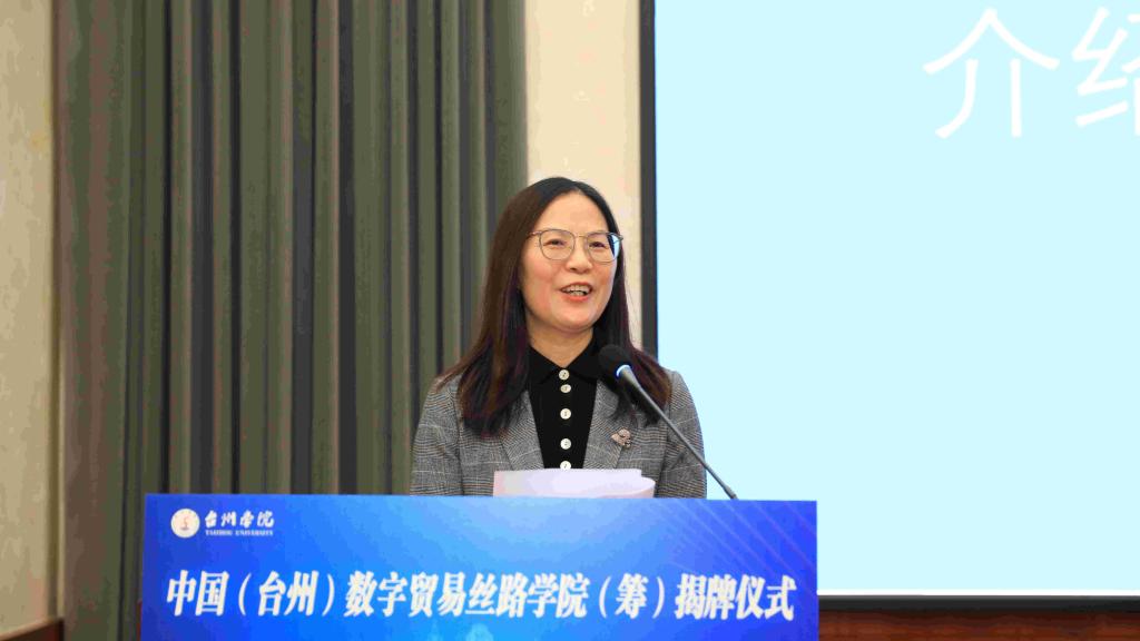 11月21日下午,中国(台州)数字贸易丝路学院(筹)揭牌仪式在我校商学院隆重举行。会议由我校国际处副处长(主持工作)王爱琴主持。