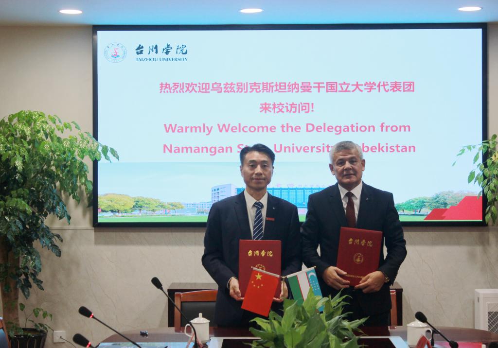 吉尔吉斯巴耶夫校长在致辞中指出,中国与乌兹别克斯坦的友好交往源远流长,早在古代丝绸之路时期便结下深厚情谊。近年来,两国在“一带一路”倡议和上海合作组织框架下合作日益密切。纳曼干国立大学是乌兹别克斯坦历史悠久的高等学府,成立于1942年,现有4个校区、33个中心和部门、10个学院、25个系,设有71个本科专业、27个硕士学位项目38个博士学位项目,拥有1000余名教师,在信息技术与自然科学领域具有突出优势。学校注重国际化发展,与多国高校建立合作关系,是乌兹别克斯坦首批设立上海合作组织特别代表处的高校之一。他希望两校在师生交流、联合科研、语言教学及联合学术委员会建设等方面深化合作,探讨设立联合教育项目、开设汉语中心,并为台州学院师生提供远程课程,共同推动国际学术交流与科学研究发展。
