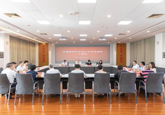 9月26日,受浙江省教育厅委派,以浙江省教育厅国际处二级调研员杜健为组长的外国留学生开学工作专项调研组第三组一行四人来我校开展专项调研。校党委委员、副校长李钧敏出席并主持会议。