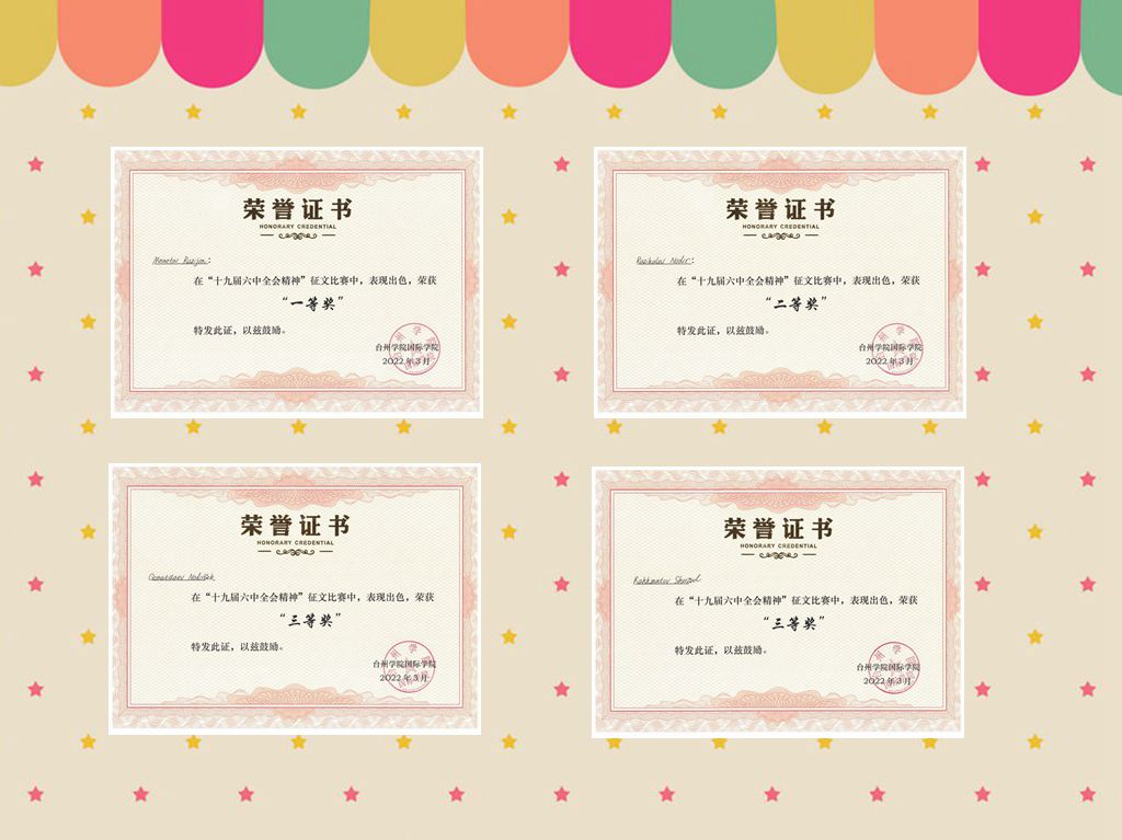 征文比赛评审过程中,评委小组重点评价作品思想内容是否契合主题、文章结构是否合理、逻辑是否清晰、语言表达是否恰当。经评审,MAMETOV RUZIJON(中文名:如兹江)的《学在中国》以高分获得一等奖,RUZIKULOV NODIR(中文名:陈自强)的《美丽乡村》获二等奖。其余同学获得三等奖。