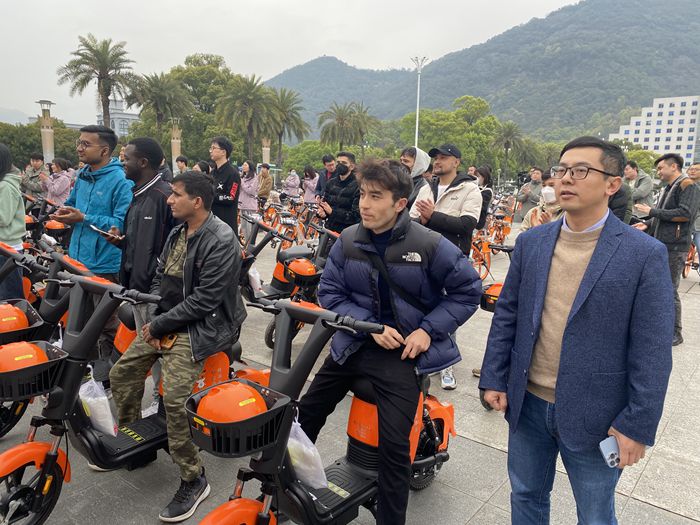公共电动自行车车体延用了极具临海味的橘色,车身上印有“文明出行,畅游临海”。在现场工作人员的带领下,国际学生代表们戴上头盔,骑上小橘车畅行约3公里,亲身体验了临海电动自行车的轻快便捷,并在体验结束后接受了电视台的现场采访。来自布基纳法索的国际学生李伟表示:公共电动车操作简便,非常好骑,方便了我们外国人出行。
