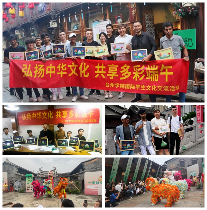 品美食、话佳节,留学生们沉浸在浓浓的节日氛围中。来自孟加拉国的学生MAHMUD HASIB(中文名:叶非凡)说:“中国与我的国家很不一样,来到中国这几个月,我了解了许多中国的历史文化。这次端午节活动我们亲手做了粽子还观看了舞狮表演,是一次非常棒的经历!”来自乌兹别克斯坦的SAPARBAEV KHURSHIDBEK(中文名:杨昊)说道:“我来中国已经四年了,参加过许多活动,但今天的活动让我非常难忘。我们制作了龙舟布贴画,穿着中国传统服饰参观了路桥十里长街,吃了食饼筒还喝到了台州特产洋菜膏。我感到非常高兴!”