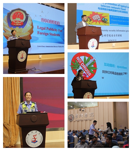 随后,台州市公安局椒江分局出入境大队邱文姿警官从签证政策,出入境法律法规和安全建议三个方面入手,提醒国际学生及时登记、更新、保管好个人证照,在规定时间内做好住宿登记,遵守外国人在华居留的相关要求,反对非法居留、就业。
