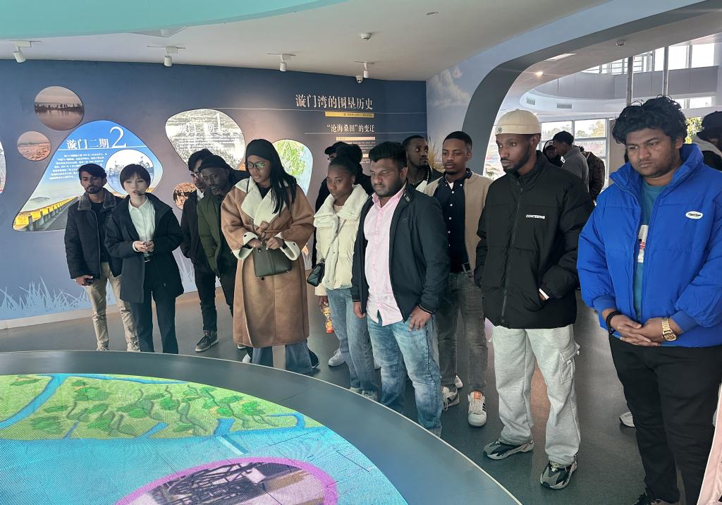 下午,国际学生前往漩门湾国家湿地公园。冬日的湿地,展现出独特的自然之美,碧波荡漾的水面与随风摇曳的芦苇荡相互映衬,构成了一幅美丽的生态画卷。在公园内,学生们参观了标本展示区,各类珍稀动植物标本以及监控区域的动物让他们对这片湿地的生态多样性有了更直观的认识。漫步在公园的栈道上,清新的空气、如画的美景,让他们陶醉其中,真切感受到人与自然和谐共生的美好。