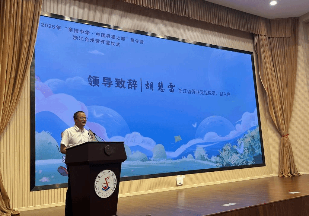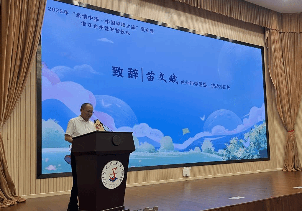 苗文斌向远道而来的华裔青少年们表示热烈欢迎。他说,台州是一座历史底蕴深厚又充满活力的城市,既有千年传承的古韵,如流淌在岁月里的诗词文脉、留存于市井的非遗技艺;又有独特迷人的山海奇景,从壮阔的海岸到灵秀的山峦,每一处都藏着故事。他希望营员们通过这次夏令营,深入感知台州的一草一木、一砖一瓦,让故乡记忆深植心田。