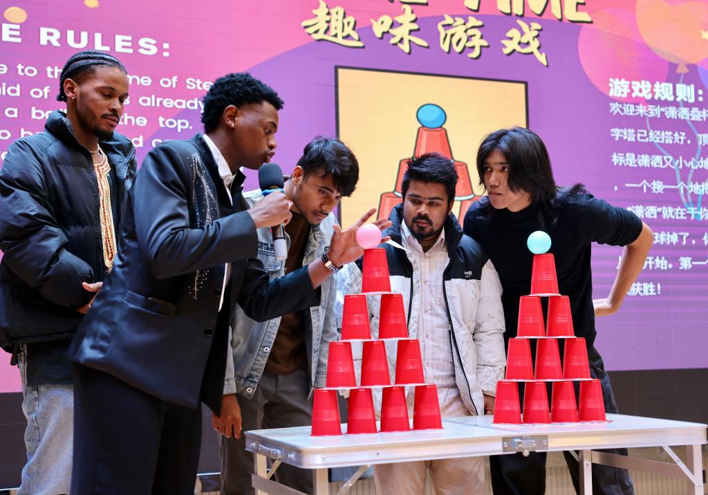 互动环节同样精彩纷呈,杯子游戏让中外学生在欢声笑语中拉近了距离,现场笑声、呐喊声交织,尽显青春活力。