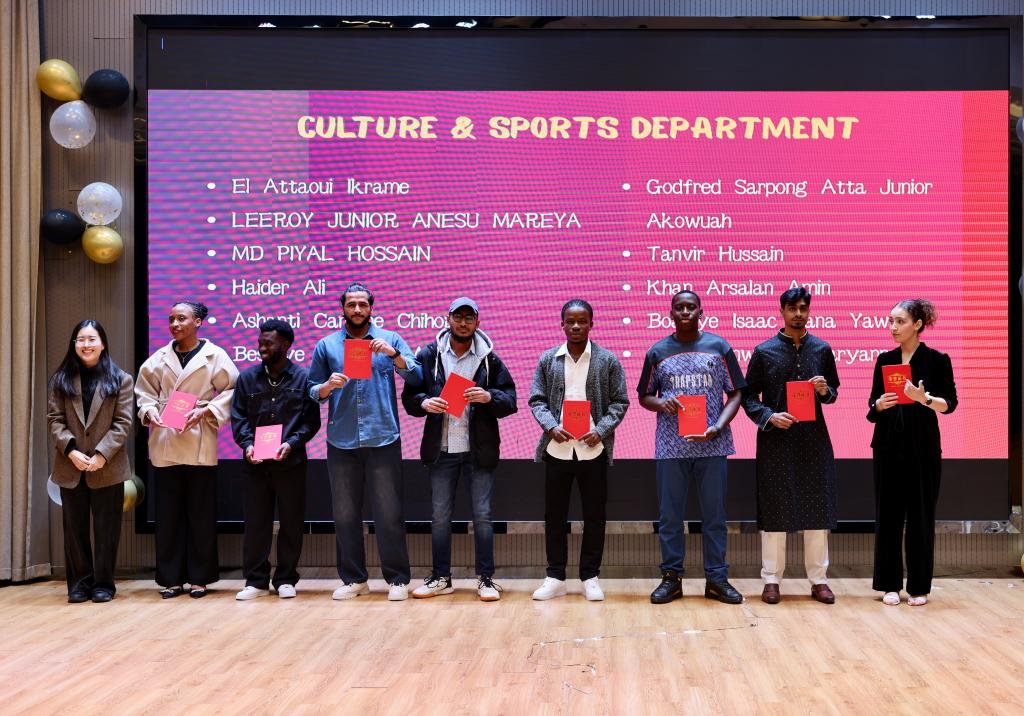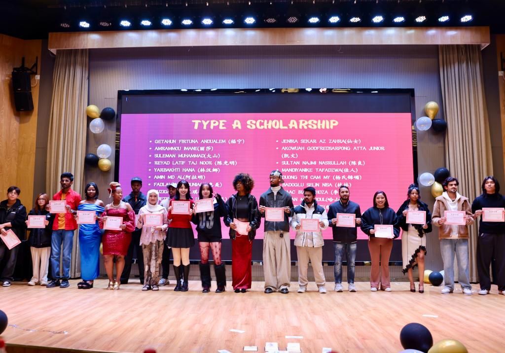 晚会还特别设置了学生会表彰与奖学金颁奖环节,为默默奉献的学生骨干颁发感谢证书,为学业优异的国际学生颁发奖学金,这不仅是对他们过往努力付出的肯定,也为新生树立了积极向上的学习榜样。
