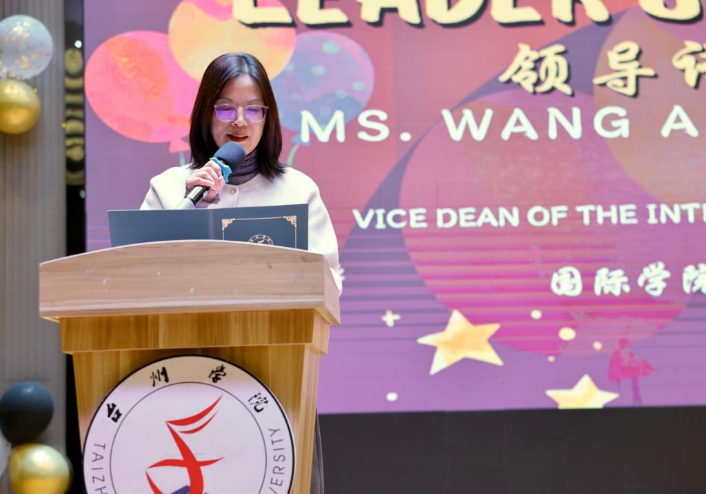 晚会伊始,王爱琴登台致辞。她代表国际学院热烈欢迎远道而来的2025级国际新生,向长期支持国际学院发展的各部门同仁表示诚挚感谢。她指出,台州学院始终以开放包容的姿态推进国际化办学,国际学院更是中外文化交融的重要平台,希望新生们珍惜在台院的求学时光,主动拥抱多元文化,在学习中夯实专业根基,在交流中增进跨文化理解,成长为联结中外、知华友华的优秀人才。