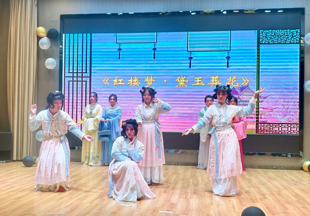 整场晚会节目丰富多元、亮点纷呈,既有动感十足的舞蹈表演,也有婉转深情的歌唱演绎;既有充满趣味的互动游戏,也有韵味悠长的文化展示。土耳其学生林林带来的独舞活力四射,节奏明快的舞步让观众忍不住跟随律动;尼日利亚学生心悦的独唱《Try Everything》饱含力量与情感,歌声直抵人心;来自孟加拉国的世龙与李小龙的二重唱默契十足,温柔的旋律抚慰人心;孟加拉国留学生明月带来的传统舞蹈,尽显异国文化的独特魅力;更有尼日利亚学生沐辰、雅慧以及巴基斯坦学生比拉尔等带来的中文诗朗诵,字正腔圆的演绎让国际学生沉浸式感受中国古典诗词的韵律之美;我校秋枫红叶戏剧社带来的越剧《红楼梦•黛玉葬花》表演则以精致的扮相、婉转的唱腔,为在场学生打开了领略中国传统戏曲魅力的窗口。